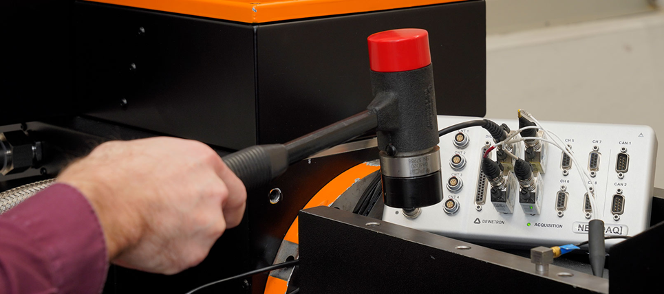 일반적으로 모달 해머를 사용하여 제어된 힘을 가하는데 이러한 해머는 타격 표면에 IEPE 센서가 내장되어 있어 정확한 힘 측정이 가능합니다. 한편, DUT의 반응은 가속도계 또는 기타 진동 센서를 통해 측정됩니다.
