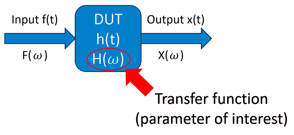 (f(t): 입력 신호; F(ω): 입력 신호의 주파수 스펙트럼; x(t): 응답 신호; X(ω): 응답 신호의 주파수 스펙트럼;